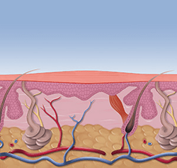 • You may see a circular flat spot on the skin with a depressed area in the middle.